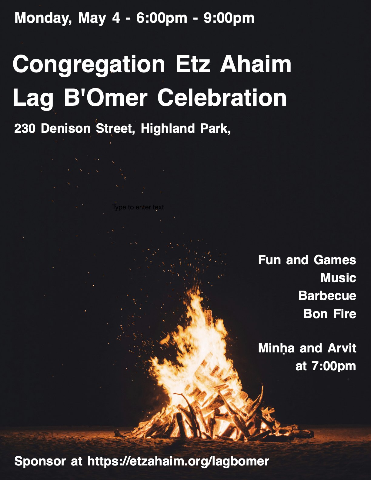 Join Etz Ahaim on December 7 as we celebrate Chanukah with Carnival Games, a Puppet Show, Arts and Crafts, and Delicious Food (meat and vegetarian)